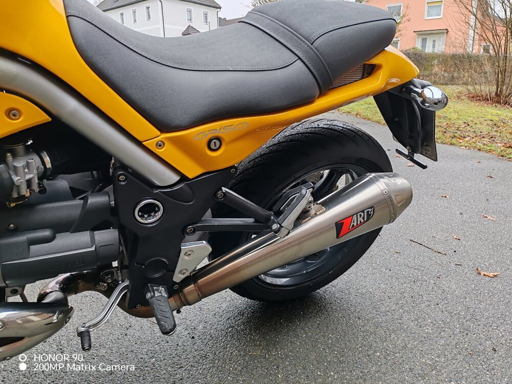 Biete meine Griso zum Verkauf an. EZ 2007, ca 35500km. Ich bin der dritte Besitzer und habe das Motorrad 2014 gekauft,, bin damit 21000 km gefahren. Es ist ein Zard Auspuff montiert, der Original ist vorhanden. Es ist ein Rizoma Lenkerumbau montiert, Original ist vorhanden. Es ist ein Tankring von SW-MOTECH montiert, ich gebe auch meinen kleinen Tankrucksack dazu. Von der Firma Radical Guzzi wurde eine neue Software aufgespielt und K+N Luftfilter verbaut. Dadurch läuft das Motorrad ohne jedes Konstantfahrruckeln und hat von unten bis in die Mitte deutlich mehr Druck. Dann gibt es noch einen Ständer von DÄS dazu. Die Standrohre der Gabel wurden DLC beschichtet, dadurch spricht die Gabel noch feiner an. Das Federbein wurde von der Firma HH RACETEC optimiert und gewartet. Es sind Metzeler Roadtec SE in einem guten Zustand montiert, siehe Fotos. Der letzte Kundendienst wurde bei 30000 km gemacht. TÜV bis Juni 2027. Aktuell ist eine Halterung für ein Garmin Zumo 390 montiert, darüber kann man sprechen ist aber nicht im Preis enthalten. VB 6000 Euro Schöne Grüße, Reinhard.