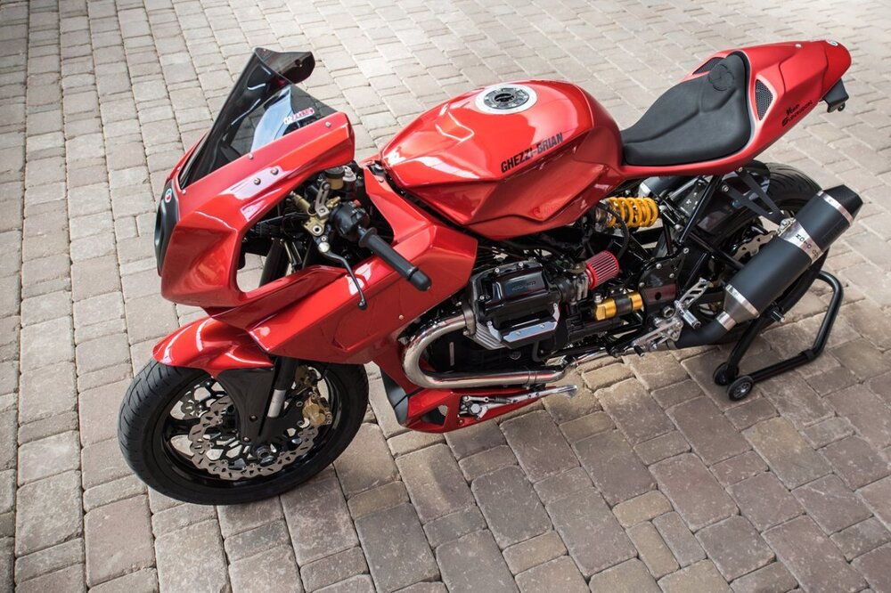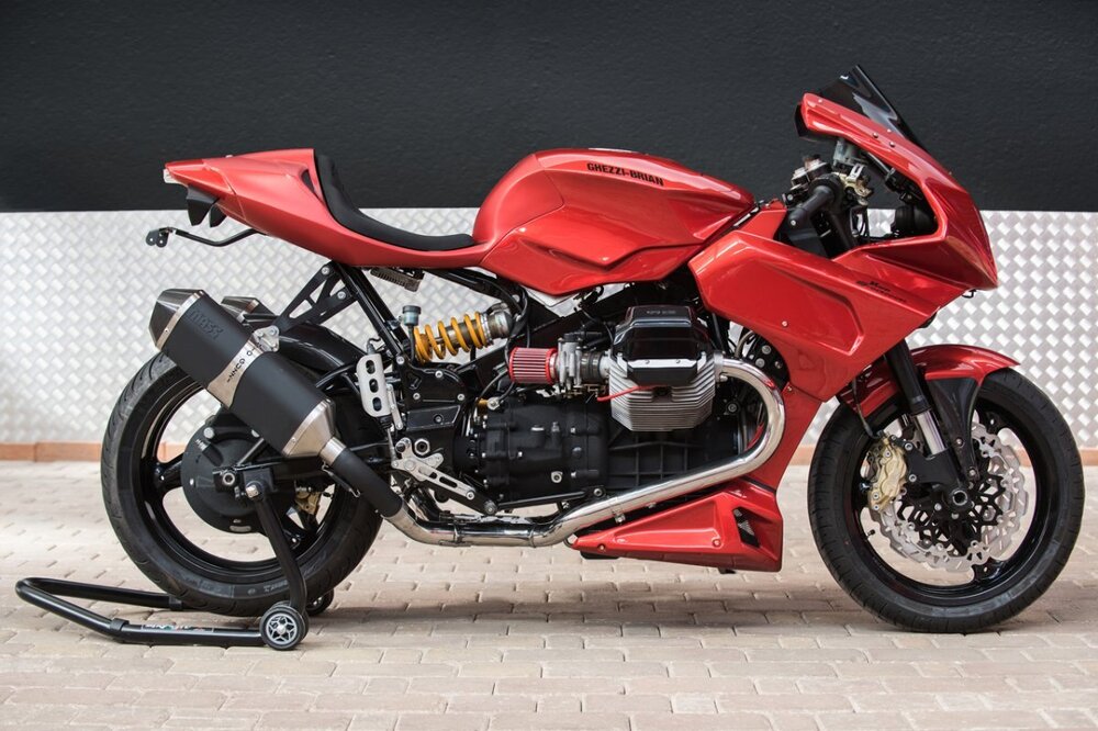 Moin, diese gut aussehende Moto Guzzi V-Twin Supersport von Ghezzi Brian konnte man sich plug and play aus einer V11, 1100Sport, Daytona und Centauro umbauen. Produktion des Teile Kits war in 2021. Ein paar dieser Umbauten habe ich in Mandello sehen können, meist wurden sie aus der nicht so geliebten Centauro umgebaut. Entgegen manch anderen Umbauten lag hier, für viele Guzzi Freunde, die Technik offen...ohne Vollverkleidung. Gruß Holger