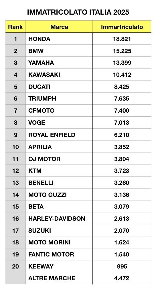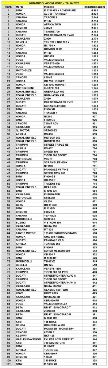 Moto Guzzi 2025 in Italien, Zulassungen immer trauriger...