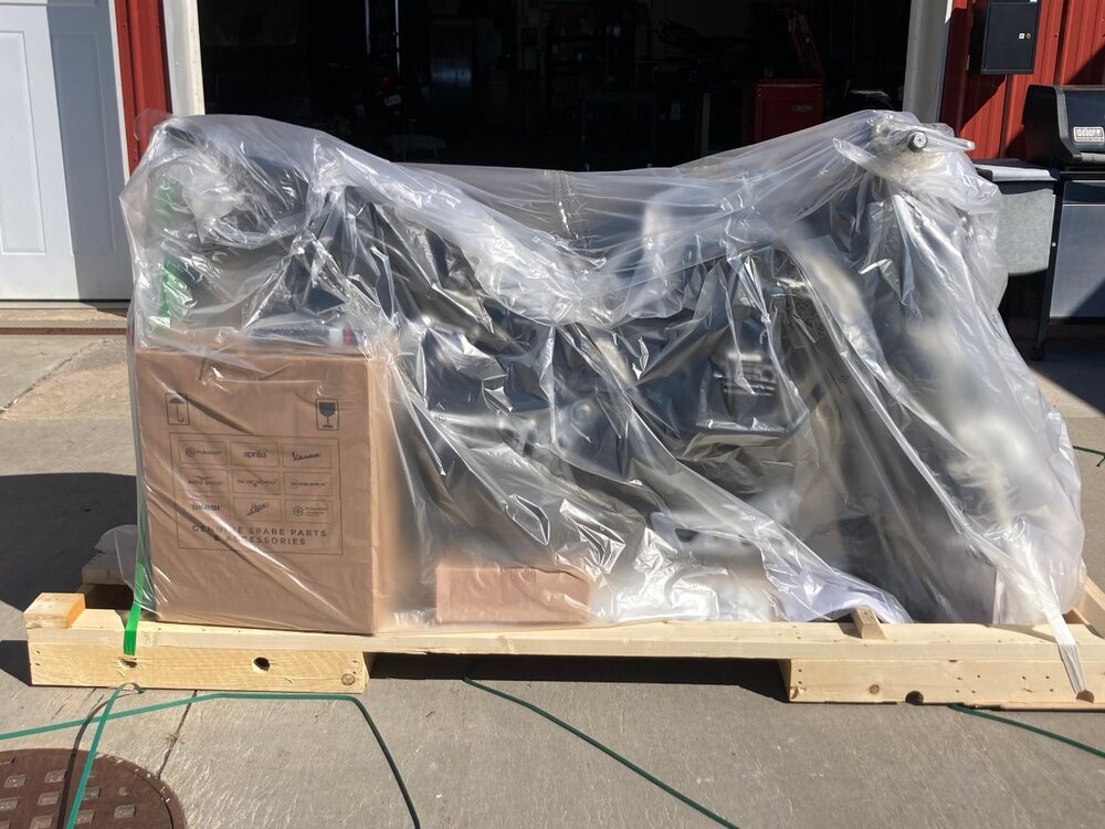 Moin, so kommt die Kiste aus Mandello del Lario; 😵 mit einer neuen Moto Guzzi drin 😉 dann beginnt der Ausbau, die Verpackungen raus nehmen, der Zusammenbau beginnt. Am Ende sollte der Händler eine ordentliche Übergabe Inspektion machen. Gruß Holger