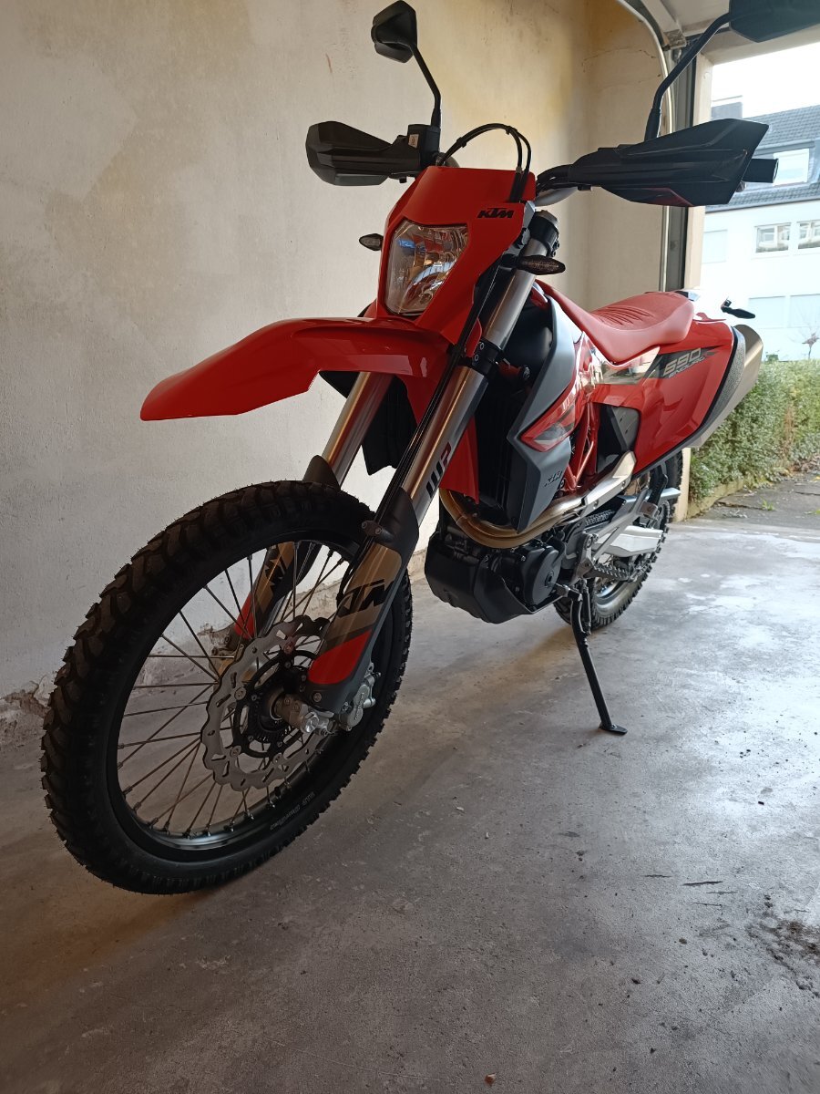 Enduro 690 R, 2024er Modell. Man fühlt sich schlagartig wieder wie mit 16 auf der MTX 80 🤣 Macht gut Randale der Hobel.
