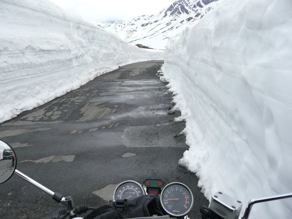 Das ist schon ne echt hohe Wand Uwe - cooles Foto! glaube den meisten Schnee hatten wir mal im Juni am Timmelsjoch, Straße war aber gut geräumt