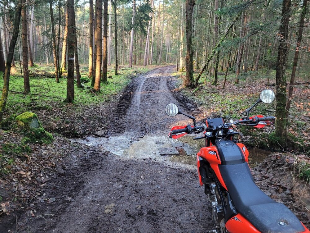 Gestern, wo ich nicht Motorrad fahren konnte, war natürlich der wärmste Tag der Woche, bis zu 10 Grad 😒 Dafür habe ich mich heute bitter gerächt. Bei Sonne und Temperaturen von 5 bis runter auf 2,5 Grad habe ich einen Abstecher in eine Richtung gemacht, wo ich noch nie mit der kleinen Beta geschaut habe. Und dort habe ich einige schöne Wege gefunden... Dann habe ich eine allerfeinste alte Ortsverbindungssstraße quer durch den Wald gefunden. Der Asphalt endete am Ortsausgang und es ging direkt in den Wald mit einem Ortsausgangsschild und dem wichtigen Hinweis Und hier die schönste Stelle dieser immer noch offiziellen Ortsverbindungsstraße: Man beachte den alten Kilometerstein... Es gab da noch einige weitere sehr schöne Wege in diesem Wald, und alle Benutzer des Waldes waren sehr freundlich. Hab noch ein Schwätzchen mit einem wandernden Ehepaar gehalten und der Mann sagte noch grinsend "hier finden sie eine Haufen schöne Wege, da können sie sich fast verfahren und nicht mehr rausfinden". Sehr nett, die Beiden. Aber am Ende trifft man natürlich immer noch ein paar Schweine... Insgesamt eine schöne 70 km Tour mit einigen interessanten neuen Wegen, und nur 30 km (Edit: nicht 20 km, hab mich verrechnet 🤨) davon auf Asphalt. Auf Asphalt wurde mir dann auch kalt zum Schluss, obwohl ich absichtlich nie mehr als 70 gefahren bin. Aber 2,5 Grad sind schon nickelig, vor allem wenn der Wind aus Osten weht...