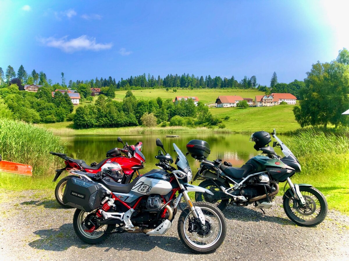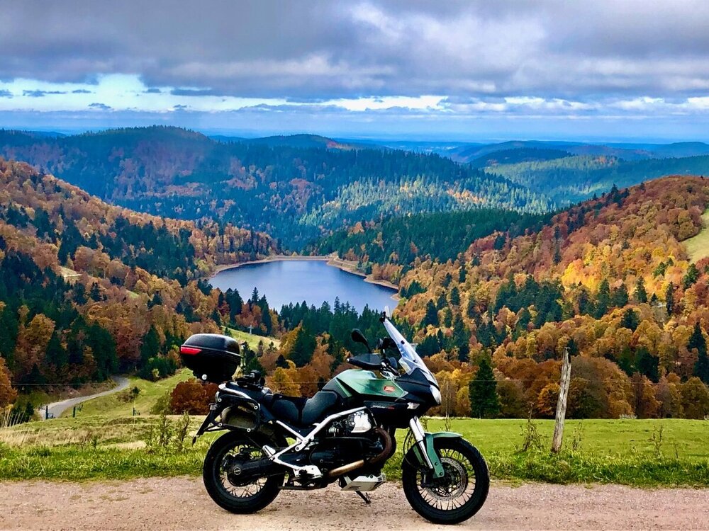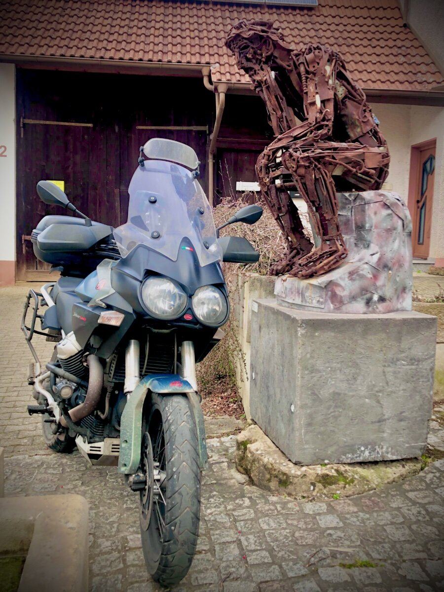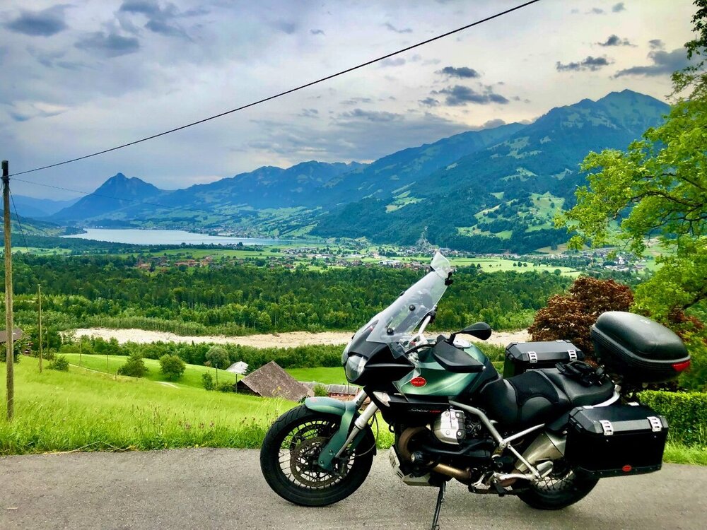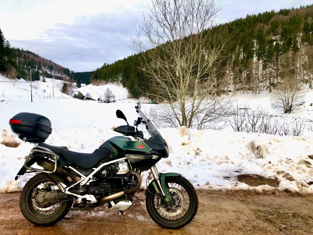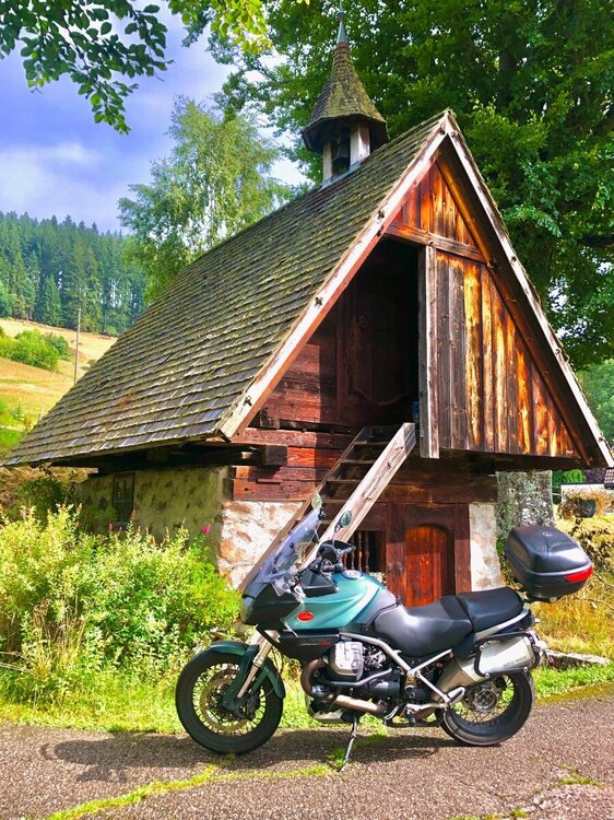 Hallo, sie ist schwer, aber wenn sie fährt scheint sie 50 KG ihres Gewichts zu verlieren. Meine Stelvio 1200 NTX, seid 10 Jahren in meinem Besitz und jeden Winter durchgefahren. Die Stelvio wurde nicht geschont und Pflege wurde ihr nur in homöopathischen Dosen zu Teil. Inspektionen bekommt sie aber pünktlich und nach Wartungsplan. Mittlerweile nähert sich der Tacho den 100000 KM an. Viele schöne Erinnerungen an gemeinsame Touren und schöne Erlebnisse schweißen zusammen, wie die Dankbarkeit nie wegen eines Defekts liegen geblieben zu sein. Ich hoffe doch sie bleibt mir noch lange erhalten. Der tägliche Weg zur Arbeit ist ihre Pflicht, die Wochenenden über den heimischen Südschwarzwald ihre Kür. Traumhafte Ausblicke und .... ...liebenswerte Kapellen liegen am Wegesrand. Dem Zerfall preisgegebene Schwarzwald Häuser, welche dereinst als Filmkulisse dienten. Ob im Winter oder Sommer , immer funktionierte die Stelvio zur Zufriedenheit. Im warmen Abendlicht im lauen Sommer .... ...haltet sie stets auch kritischen Blicken stand. Über kleinste Strassen in den Vogesen... ...bis zu den Alpenpässen... ...ist sie immer mein bevorzugtes Reisegefährt. Auf dem Weg in ihre Geburtsstätte ... ...vorbei an Premana... ...ging es nach Mandello. Auch in Gesellschaft ihrer Enkel und Urenkel kann sie sich , meiner Meinung nach, sehen lassen. Drei Generationen Guzzis unterwegs und immer wieder ist es schön. ( V100 von charli O, V85 von Holger K und meine NTX) Solange ich körperlich in der Lage bin die Stelvio zu händeln wird sie bei mir bleiben und mir den Alltag verschönern. Auf viele schöne Touren und Kilometer in 2026. Genau das wünsche ich euch allen auch. LG Uwe