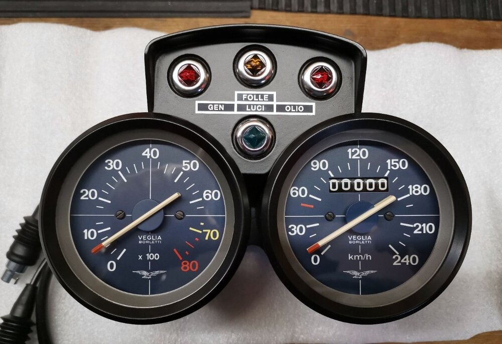 Hallo Guzzisti, ich habe noch ein ganz besonderes Schmankerl im Regal liegen, das nicht jeden Tag angeboten wird. Ein komplettes und makelloses Cockpit einer 850T, welches aber auch an anderen Tontis klasse aussieht - m. e. das schönste Cockpit, das Luigi jemals an einer Guzzi verbaut hat. Das Cockpit ist komplett inkl Leuchtmittel etc. Die Uhren und alle sonstigen Teile sind original aus den 70ern und wurden wieder professionell in Neuzustand versetzt (s. Bilder)! Sendet mir bei Interesse gerne ein realistisches Angebot per PN!