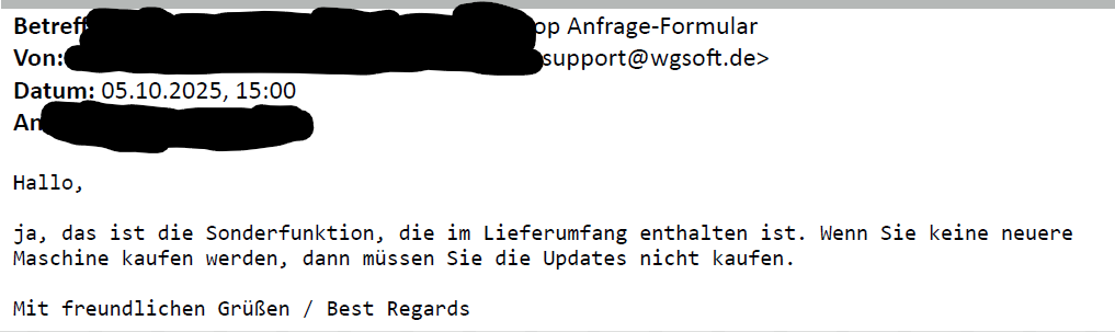 Hallo Guzzisti, anbei die versprochen Rückmeldung von OBDSTAR ISCAN für MOTO GUZZI. Die Nachfrage, ob für die Wartungsrückstellung (Sonderfunktion) jährliches Update erforderlich macht, hat folgende Antwort ergeben ! Gruß Armin