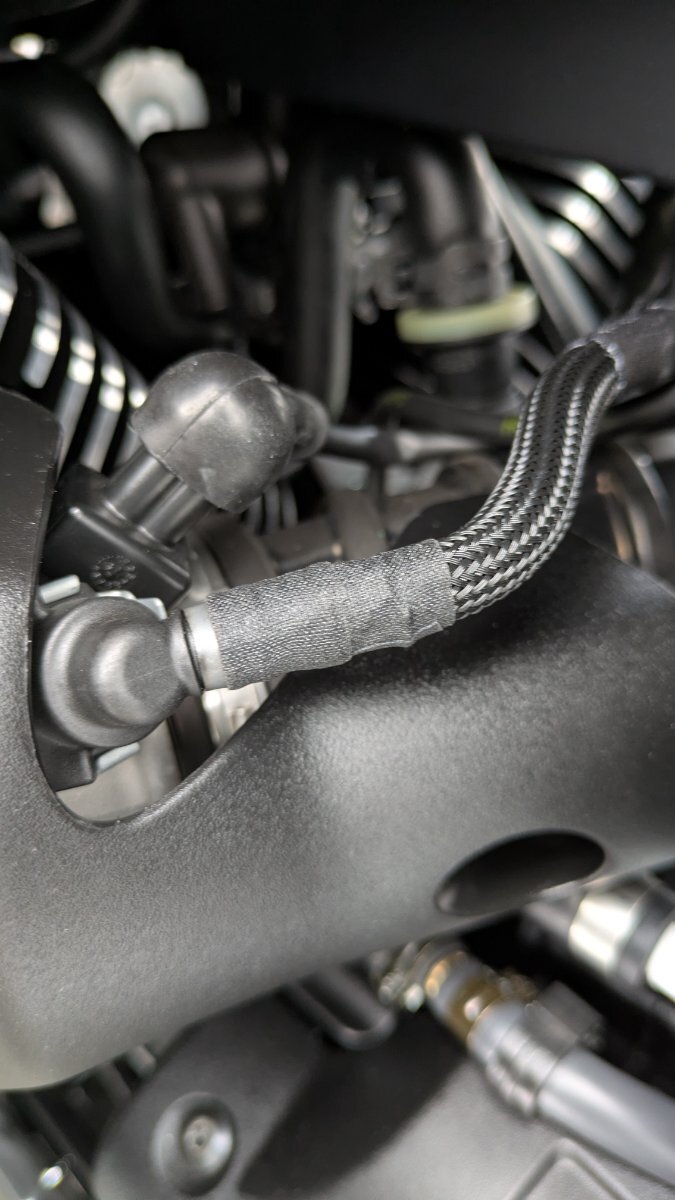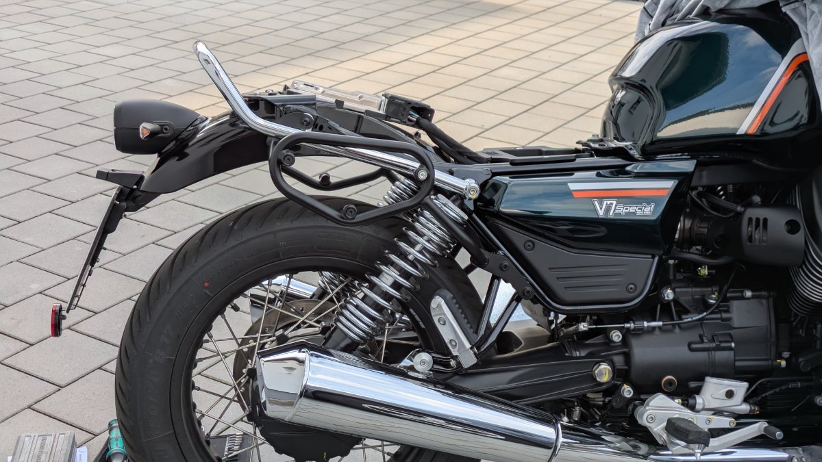 Die Guzzi hat ihre SW-Motech Träger bekommen. Und ein wenig Schutzfolie, wo die Sitzbank an Rahmen und Tank aufliegt. Das Ende vom Gewebeschlauch an den Einspritzdüsen wurde jeweils etwas mit Gewebeband fixiert. Die Kabelage unter der Sitzbank, im Bereich der Sicherungen wurde etwas schöner verlegt, der Anschluss für USB-Dose oder anderes Zubehör flog da etwas lieblos in der Gegend rum. Ein paar zusätzliche Kabelbinder haben geholfen. Bin da als gelernter Elektroniker etwas perfektionistisch. Der neue Helm bekam auch eine kleine Überarbeitung. Obwohl der HJC RPHA 91 schon für einen Klapphelm sehr leise soll, ging da noch was. Die Lücke zwischen Kinnbügel und Helm wurde mit zwei Streifen selbstklebender Bürstendichtung geschlossen. -
