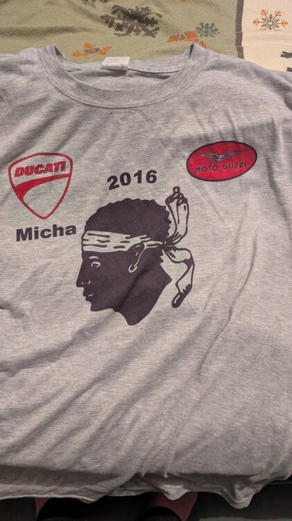 Wenn ein T-Shirt-Drucker in der Nähe ist, einfach dahin gehen und per Foto die Vorlagen mitnehmen. Guzzi scheint hier keine Lizenzpobleme zu haben. Meine Shirts sind auch so entstanden.
