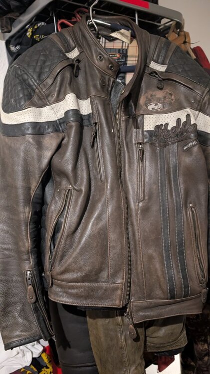 Guzzi-Fahrer tragen natürlich kein Plastik, ausser bei Scheisswetter, dann kommt auch die Rukka ins Spiel. Ansonsten Leder