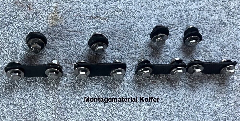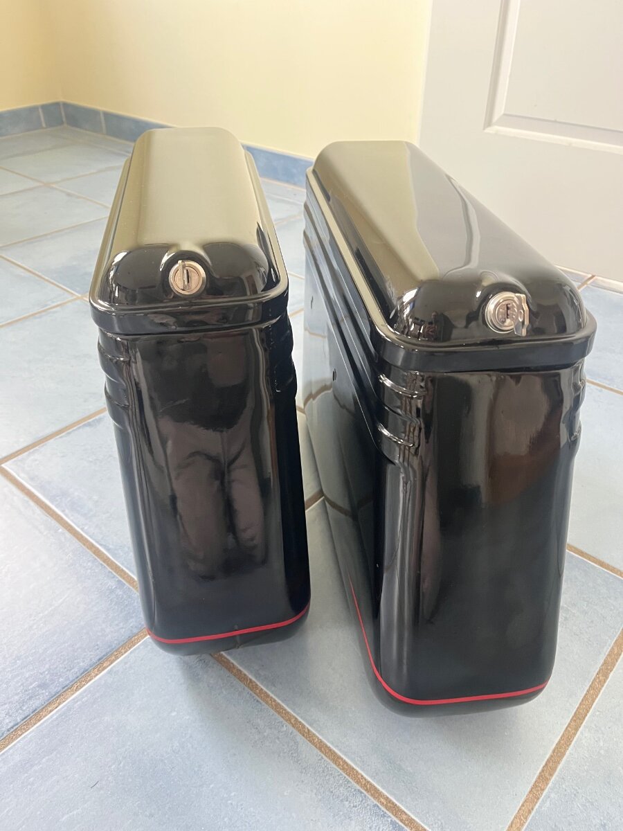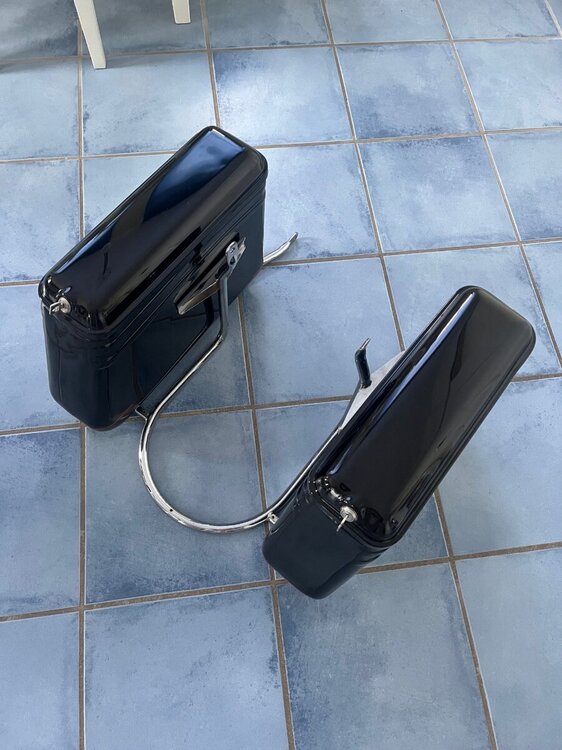 Hallo, ich biete (zunächst hier im Forum und gleichzeitig im Parallel-Forum) an: Gebrauchten Koffersatz samt Halterung / Reling für Moto Guzzi V7-700. War montiert auf meiner V7-700cc Baujahr 1971, die ich letztes Jahr in Italien gekauft und dort abgeholt hatte. Ich weiss nichts über das Alter der Teile, der Verkäufer hatte sie mir einfach (bei ihm unmontiert) mitgegeben. Zustand bitte den Bildern entnehmen. Wie man darauf sieht, sind sie schwarz mit roter Linierung. Meine V7 war zunächst 19 Jahre lang bei den Carabinieri in Rom zugelassen. Das könnte zu der farblichen Ausführung der Koffer passen, ich weiss es aber nicht, ob sie „Original Ex-Carabinieri“ sind. Preis: € 300,00 Achtung: Nur gegen Abholung ( Raum Karlsruhe). Versand ist wegen der Sperrigkeit der Teile ausgeschlossen, weil für mich zu aufwändig. Verkauf nur als Gesamtpaket. Dies ist ein Privatverkauf. Ich gebe daher keinerlei Gewährleistung oder Rückgaberecht. 😀 Peter Anhang: 4 Bilder