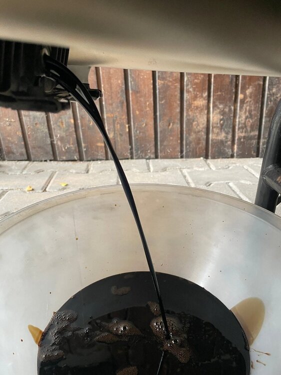 Heute nach 100km Warmfahren Ölwechsel an der V85TT durchgeführt: So eine Drecksbrühe 🤢: Die Dichtung auf der Ölfilter-Schraube war regelrecht draufgepresst, musste die mit einem kleine Schraubendreher und Hämmerchen lösen: Gruß Matthias -