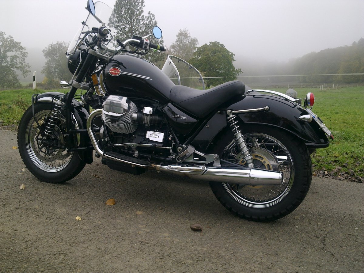Ich hätte es kaum anders formulieren können. Quer eingebaute V-Motoren und Reihenmotoren, egal ob quer oder längs, gefallen mir überhaupt nicht. Boxer ... da wäre ich direkt beim weiß-blauen Großkonzern mit seelenlos perfektionierten Fahrmaschinen. Dann sah ich vor 1 1/2 Jahren auf der Suche nach meinem ersten eigenen Motorrad eine Cali Vintage. Da war es um ich geschehen. Ich komme aus einer Zeit, in der Motorräder noch mit jeder Menge Chromlametta behängt waren. Deshalb nur ein Unterschied zu BeppelRL: Eine Cali Vintage ist nicht zum fahren gebaut, sondern zum putzen. Das mache ich gerne nach jeder Ausfahrt, solange der Schmutz sich noch leicht lösen lässt. Die Freude am Motorrad beginnt bei mir nicht beim Fahren, sondern wenn ich die Garage aufmache und drauf zu laufe.