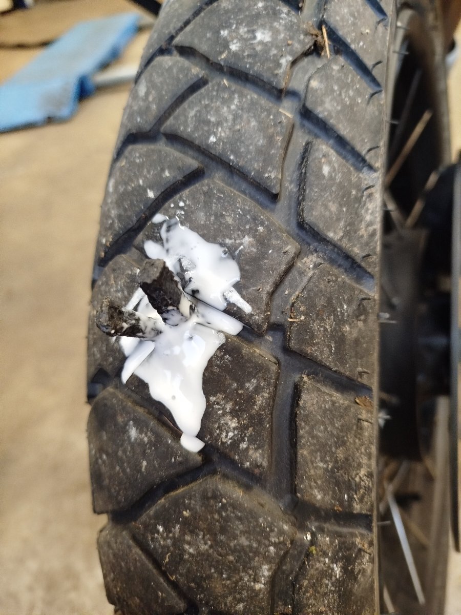 Heute mal ganz gemütlich zum KTM Händler gefahren und mein neues Spielzeug gekauft. Auf der Heimfahrt hatte ich dann den ersten Defekt an der Guzzi ,so das ich nicht mehr weiter fahren konnte. Der Vorderreifen war plötzlich platt. Natürlich kein Pannenset dabei gehabt. Zum Glück war ich nur 10 km von Zuhause entfernt. Also abholen lassen und die Guzzi mit meinem T6 abgeholt. Zuhause hab ich dann geflickt. Mal sehen ob ich das so lasse. War ein ca 8mm Riss im Reifen. Natürlich ist der Reifen nagelneu und hat keine 300 km runter, wie sollte es auch anders sein. Naja mal verliert man, mal gewinnen die anderen. So ist's halt. Gruß Boris -