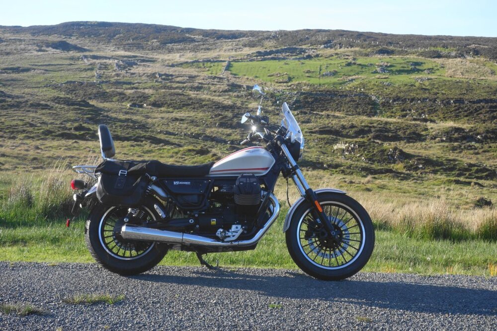Hallo zusammen Also Beppe (Guiseppe) ist das Motorrad (eine V9 Roamer) und IRL (Irland) ist die Insel auf der er unterwegs ist, genaugenommen im Nordwesten selbiger. Ich bin der Uwe und wohne seit fast 30 Jahren hier. Im Gegensatz zu vielen anderen hier habe ich keine grossartige Motorrad Karriere hinter mir. Mit Mitte 20 den FS gemacht und ein Anfängerbike gekauft (Suzuki Savage). Mit der war ich recht zufrieden (nur war sie eigentlich zu klein) und hab die auch gute 10 Jahre gefahren. Irgendwann ist die dann im Schuppen gelandet, wie das halt so ist und ich bin gute 20 Jahre lang nicht mehr Motorrad gefahren. Vor zwei Jahren habe ich wieder angefangen, mit einer Royal Enfield Bullet 500. Ein herrliches Motorrad für irische Nebenstrassen. Als die Sicherheit im Umgang mit dem Motorrad wieder da war und die Entfernungen grösser wurden musste ich aber feststellen dass die Bullet für Hauptstrassen doch eine Kleinigkeit zu untermotorisiert aber vor allem deutlich übervibriert war. Es musste etwas grösseres her, mit genau so viel Charakter aber etwas mehr Manieren. Nach langer Recherche bin ich dann bei Guzzi gelandet und wg. bestimmter Einschränkungen bezgl. Gewicht und Nutzungsprofil dann bei der Roamer. Ungesehen und ungefahren gebraucht vom deutschen Händler importiert...und ein absoluter Glücksgriff. Sitzt, passt, wackelt und hat Luft. Seit April ist Beppe hier und wir haben abends und am Wochenende (sofern das Wetter passt) schon fast 5000 km zusammen erlebt. Hier muss ich ja keinem Erklären was eine Guzzi für ein tolles Motorrad ist, anscheinend bin ich auch der passende Besitzer. Hier ist also Beppe: