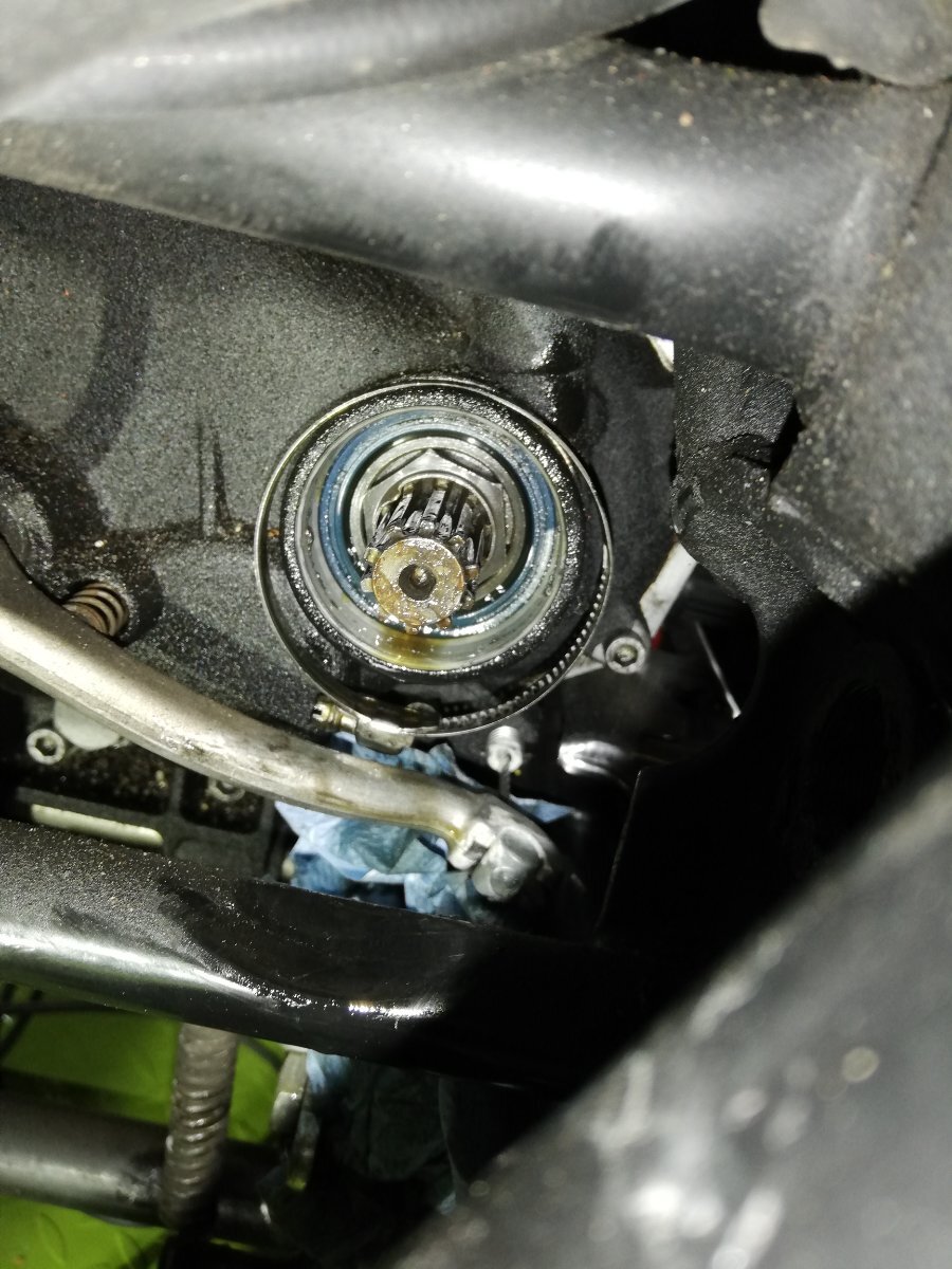 Hallo, habe mich zum Simmering vorgearbeitet jetzt meine Frage muss die Mitnehmermutter zum Wechsel raus der Dichtring befindet sich doch aussen (blauer Dichtring auf dem Foto) ?