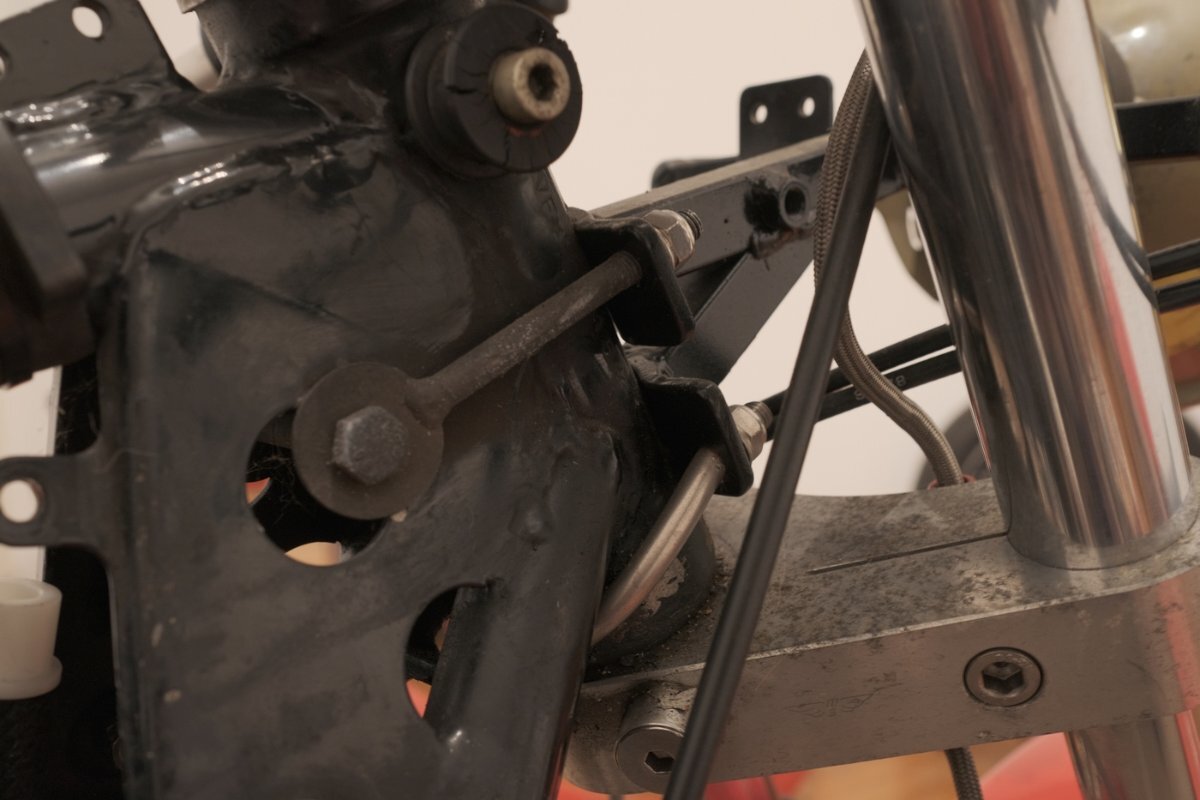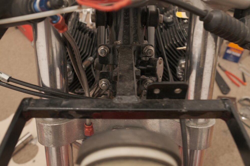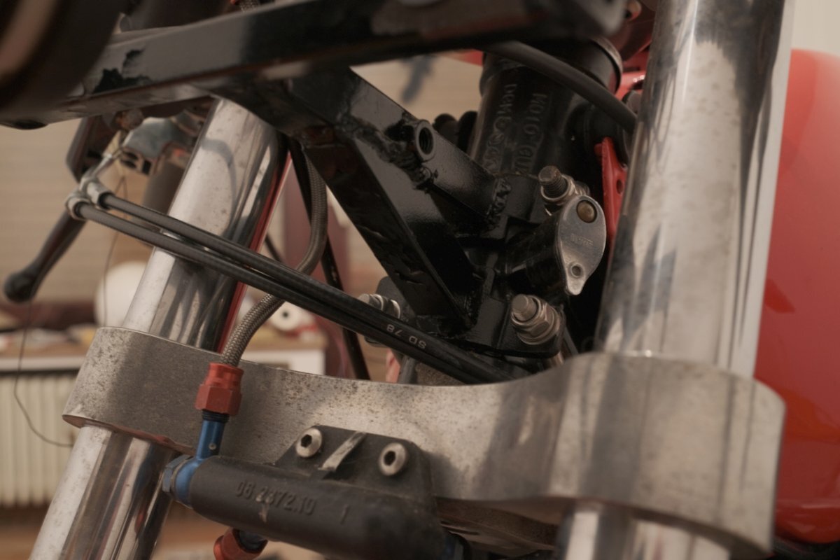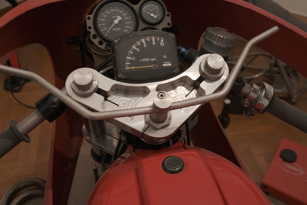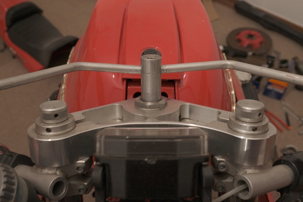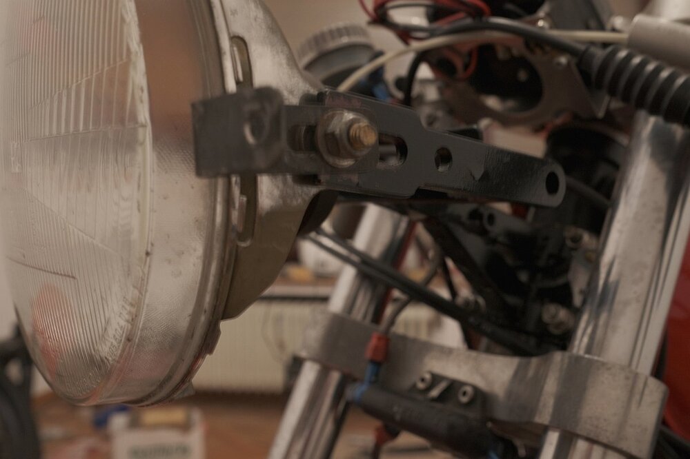 Salü und ein gutes neues Jahr. Anlagen: 1. Scan aus Katalog Moto-Spezial 1997 S.17 2. P&W Halter Lenkkopf / Gabelbrücke Prinzip aus den Bildern ersichtlich. Bei Klemmung um die Lenkkopflager diese nicht quetschen! Rahmennummer, je nach Ausführung, teilweise unlesbar. Frontseitige Fixierung zu beiden Seiten, mit wahlweise zusätzlicher schräger Abstützung zur/Richtung Unterseite des Scheinwerfers Untere Seiten an den Zylinderkopfdeckeln mittels Blech und/oder über die Montagepunkte der ehemaligen vorderen Blinkerstange, obere Seiten über eingestecktes freigängiges Geweih in der Lenkopfmutter oder feste Verlängerungen ab Lampenhalter nach links und rechts hinten-oben befestigen. In Verbindung mit - möglicherweise notwendig werdenden - tiefer angeschellten und/oder anders gekröpften Stummeln passen die Längen der Züge, und, wenn die Instrumente in die Halbschale vorverlegt werden, die der Wellen u.U. nicht mehr. Wenn es Sie außerdem nach anderen Instrumenten, Beleuchtung, Ölkühler in der Verkleidung, sauberer Verlegung & Montage elektrischer Komponenten in das Verkleidungsgeweih usw. gelüstet, ensteht, je nach Sichtweise, schnell ein Rattenschwanz / umfangreiches Projekt. Zur Kür gehören selbstverständlich radikal zurückverlegte Rasten. Beste Grüße, Siggi