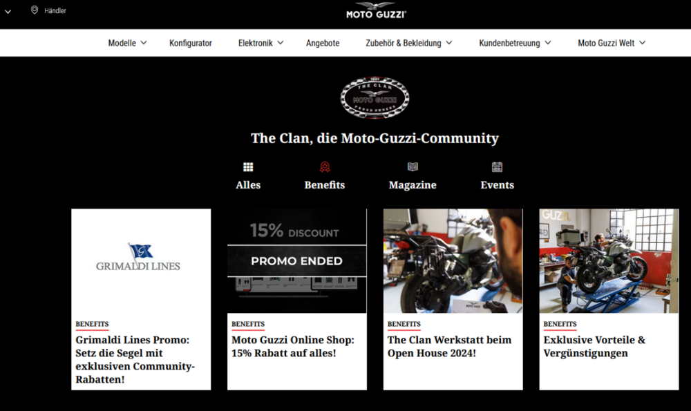 Hi, es wurde ja bereits viel zu Modellen und anderen Aspekten geschrieben. Ich finde diese (völlig veraltete) Seite sagt (leider) schon relativ viel aus 😞. Und wenn man sich derart wenig um seine Stammkunden bemüht, wie will ich dann neue "Guzzisti" gewinnen - aber die Hoffnung stirbt bekanntlich zuletzt und am Ende wird alles gut 😉! -