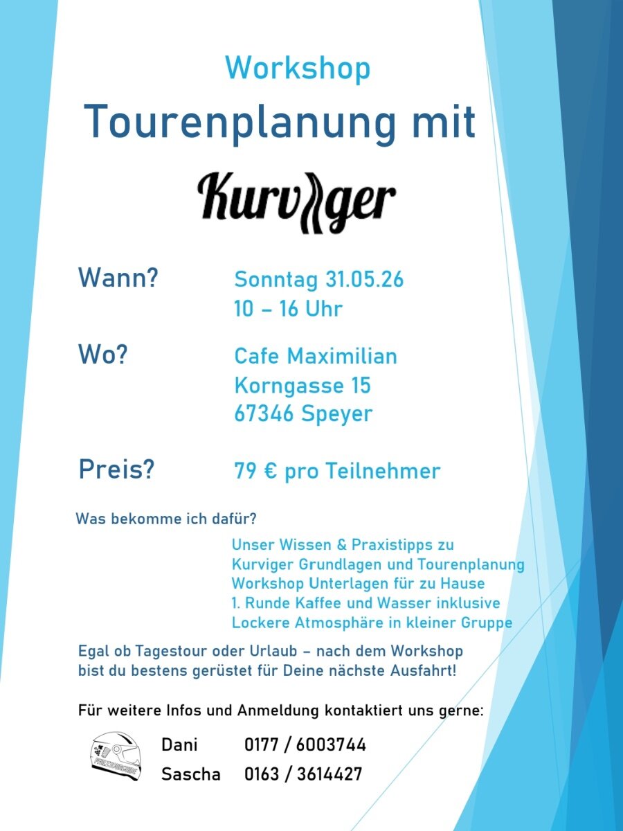 Hallo zusammen, vielleicht interessiert es ja jemanden. Am 31.05.2026 findet in Speyer ein „Kurviger-Workshop“ statt. Ich Versuch mal den Flyer einzustellen. Gruß Albert