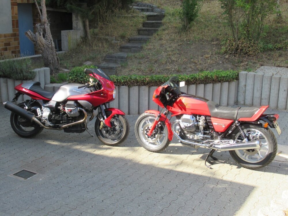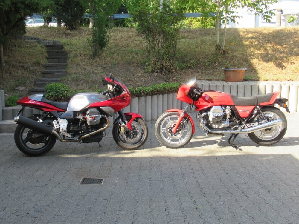 Hallo, wollte an dieser Stelle einmal die Veränderung eines Motorrads durch den Halterbedarf zeigen. Eines meiner aktuellen Motorräder habe ich seit Sommer 1994 in meinem Besitz. Es handelt sich dabei um eine Guzzi T3 Polio, die ich als Gespann umgebaut mit wenig KM bei Walther erworben habe Da sich die Bedürfnisse über die zeit ändern (da kommen Kinder!) musste der Seitenwagen wachsen. So wurde bei Stern 1999 ein neuer größerer Seitenwagen angebracht! Nach diversen weiteren Verbesserungen wie neue Schwinge oder neuer Auspuffanlage wurde so mehrere Jahre gemeinsam gefahren. Dann wurden die Kinder groß und der Seitenwagen war nur noch leer! Die T3 liebt man trotzdem! - Fazit 2020 Umbau zur Solo! Das Bild zeigt den aktuellen Zustand, indem wir das Motorrad immer noch liebevoll bewegen! Bei der T3 handelt es sich um ein Baujahr 1978, wir haben sie jetzt seit 1994 im Besitz Mittlerweile wurde vor wenigen Jahren der Motor überholt und hat nun 948ccm. Dieses Motorrad wird uns bis zum Ende begleiten und da der Virus Guzzi in die nächste Generation vererbt wurde ... Grüße Bobby9 points