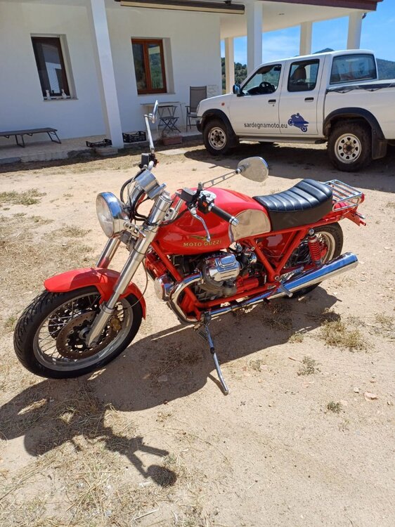 Die Moto Guzzi hat mein verstorbener Mann 1979 neu gekauft u. über all die Jahre mit viel Liebe innovativ verändert (alle wesentl. Veränderungen sind vom TÜV abgenommen u. im Kfz Schein vermerkt). Außer dem Rahmen sind alle Teile neu lackiert. Bereifung ist neu (0 km). Tachostand: 22.728 km. TÜV bis 06/27. Offizielles techn. Datenblatt ist vorhanden. Die Moto Guzzi möchte wieder gefahren werden u. wünscht sich einen einfühlsamen, achtsamen Menschen, der sie so zu schätzen u. zu lieben weiß, wie mein Mann. Dieses besondere Motorrad, welches meinen Mann 45 Jahre begleitet u. viel Freude bereitet hat, befindet sich z.Zt. auf Sardinien, in der wunderschönen Ogliastra u. wäre dort abzuholen. Bei Bedarf kann auch ein Transport nach D organisiert werden. Preis auf Anfrage. Kontakt per Email: elke.wi@web.de1 point