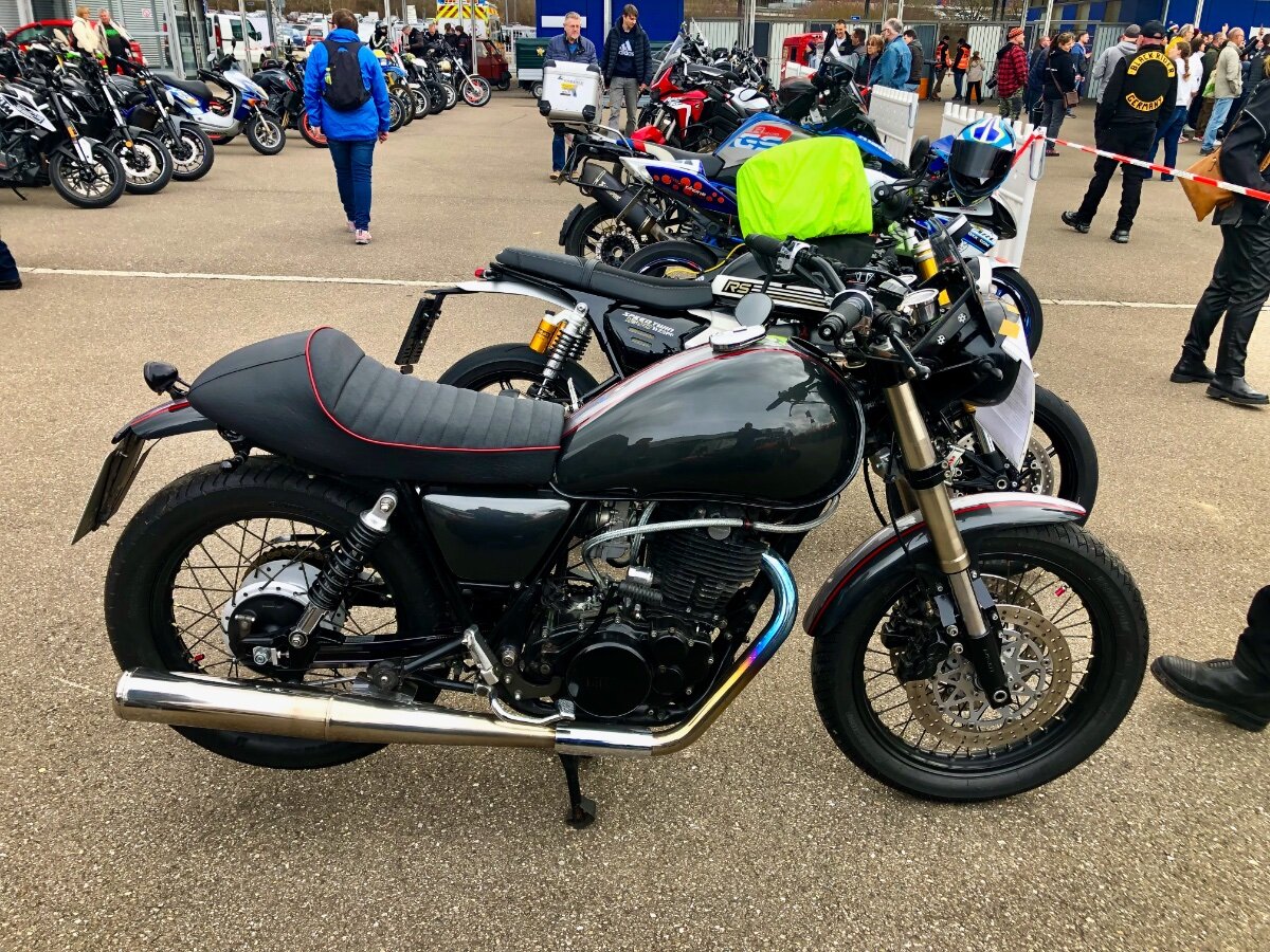 Hallo Elmar, war eine schöne kleine Messe. Hat mir wesentlich mehr zugesagt als die Bodensee Messe in Friedrichshafen. Schön das es mit unserem Treffen geklappt hat.👌 Es lohnte auch ein Bummel über den Parkplatz: Obwohl das Wetter etwas frisch war kamen einige mit dem Bike. Schöne BMW R90 mit original Unterschriften von Helmut Dähne veredelt. Nicht nur auf dem Helm, auch auf dem Motorrad zu finden. Umgebaute SR 500 mit vielen schönen, verbauten Teilen. Nächstes Jahr wieder. LG Uwe2 points