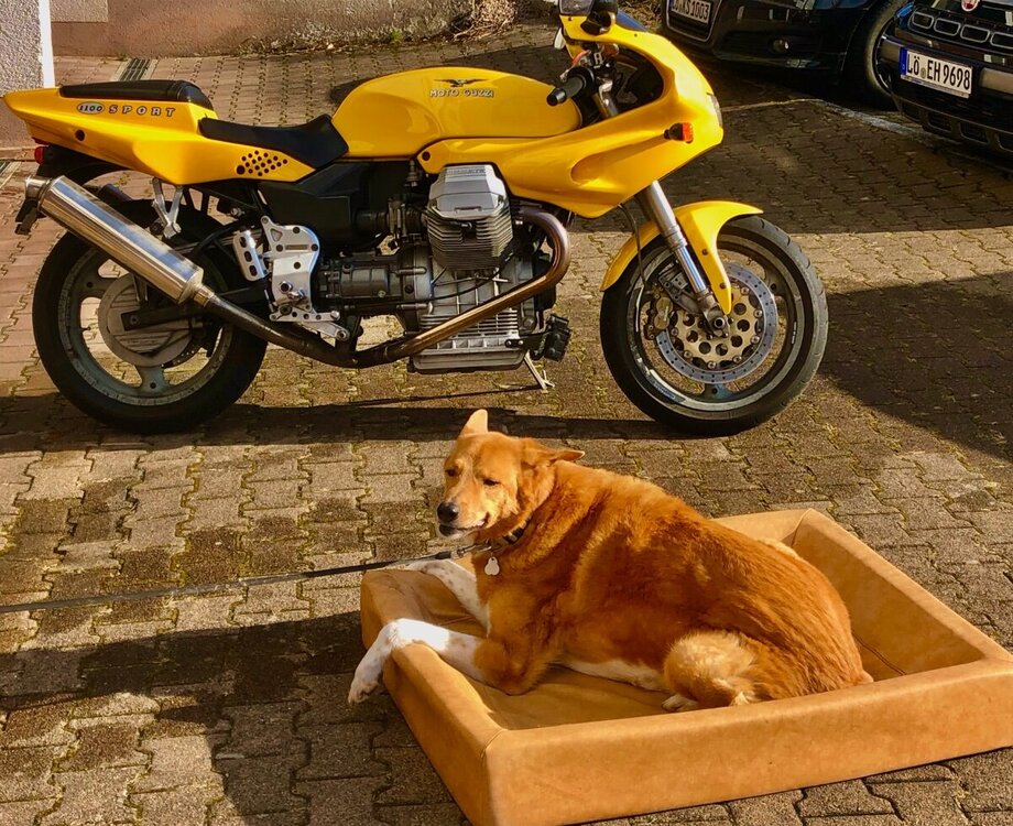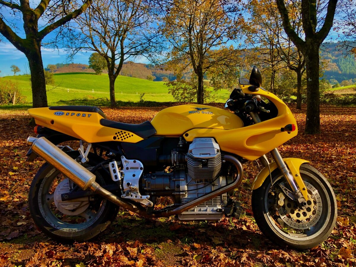 Nach einiger Zeit mit der V11 Le Mans kam ich auf den Geschmack sportlicher Guzzis. Der im hinteren Bereich breite Tank der V11 bereitete mit auf Dauer Probleme in der Hüfte. ( man wird nicht jünger ) Bei der Sport ist der Tank schmaler. Die 1100 Sport ist zwar auf Dauer auch nicht bequem aber die etwas schwülstige Optik der V11 hat sie noch nicht . Für mich ein Motorrad um ein paar schöne flotte Runden zu drehen um sie danach in der Garage abzustellen und sich am Anblick erfreuen. .1 point