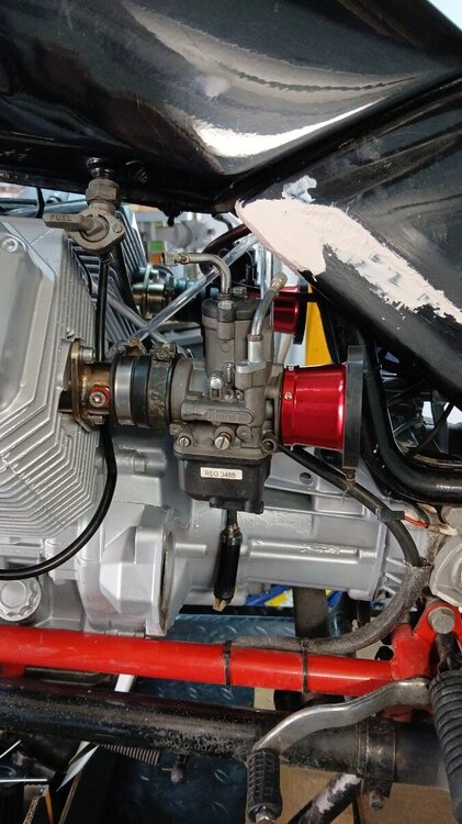 Liebe Guzzifreunde, manch einer wird sich fragen, "mein Gott was tut denn der da". Ich hatte im Frühjahr 2025 eine etwas heruntergekommene V65 gefunden und beinahe geschenkt bekommen. Erst zuhause sah ich dass es sich um eine Lario mit dem Vierventilmotor handelt. Die Guzzi war seit circa 15 Jahren herumgestanden und nicht bewegt worden. Wie gesagt, furchtbarer Zustand, von Originalteilen keine Rede, aber der Motor drehte sich und der Gedanke alles was so im Lager herumliegt zu verwenden, kam mir in den Sinn. Das Ergebnis ist ein abgespecktes Lario/Bobber/Caferacer/Irgendwas-Derivat, das sehr leicht ist und überraschend Freude zu fahren macht, niedrig, fahrradleichtes handling, speziell mit neuen Lagern in Rädern, Lenkkopf und Öl in den Gabelholmen. Geht wie der Teufel.... Da beide Armaturen vom Zeitzahn zerfressen waren und sich im Lager ein digitaler DZM und ein GPS Tacho fanden, wurde ein Alurahmen gepuzzelt und auf das schon improvisierte Zündschloss/Leuchtenblech gesetzt. Funktioniert bestens und sieht cool aus. Küstlerisch wertvoll Guzzis Gestaltung der Doppelkipphebel. Wobei ich sagen möchte dass ich mit dem Gefährt auf Grund der Sitzstellung nicht weiter als 50 Kilometer fahren möchte. Die geraden Ansaugstutzen habe ich wieder verworfen da mein linkes Knie damit kollidierte. Vielleicht finde ich noch eine Mittellösung. Auspüffe sind frisch gestopft und brümmeln nur dezent ohne die Mitmenschen mit Krawall zuzumüllen. Es gibt auch Lafranconis für das Mop. Der Um- und Zusammenbau machte Spass und das war es letztendlich.7 points
