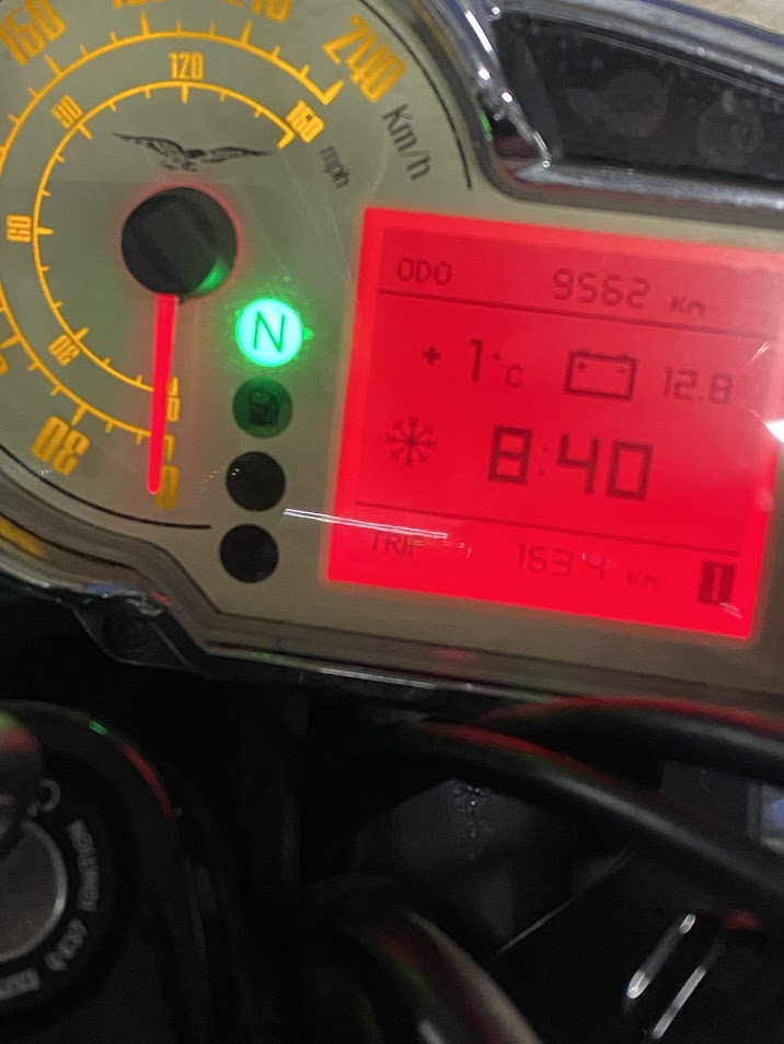 Nachdem es sich vor ein paar Tagen schon nach Frühling anfühlte wurde es heute nochmal kühl am Niederrhein, eigentlich fahre ich da lieber mit dem Fahrrad zu Arbeit, da wird einem schön warm aber da ich heute in der Mittagspause noch was besorgen muss wurde es die Guzzi. Da habe ich doch das erste mal bewusst das süße kleine Schneeflöckchen gesehen, dass mir meine Bellagio zur Begrüßung zeigte 😁4 points