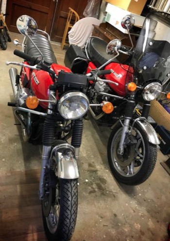 Ich fahre seit viel Jahre Moto Guzzi. Ich hatte eine California 2 und in Moment habe ich zwei T3 mit gleich Baujahr, gleich Farbe, gleich km-stand und verschiedene Zubehören.