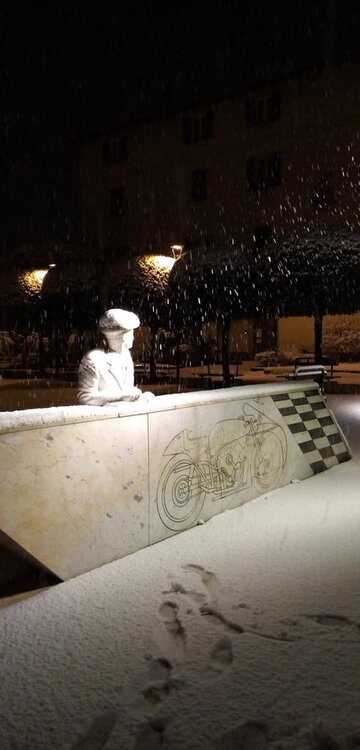 Winter in Mandello del Lario zum Jahresanfang und Carlo Guzzi wartet im Schnee auf den September 2026 Gruß Holger -