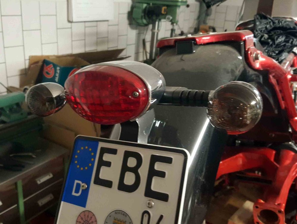 So, mal wieder ein Update: Die Nabe mittlerweile neu lackiert -doch in schwarz- da ich mit dem Guzzi rot nicht wirklich weiter gekommen bin... Dann noch die Ventile eingestellt, Öl und Bremsflüssigkeit gewechselt, die Blinker etwas dunkler gefärbt, und noch einen Rückstrahler unter dem Kennzeichen befestigt (hatte der TÜV vor 2 Jahre moniert). Jetzt noch zusammenbauen und dann bin ich schon startklar für 2023 :-) -