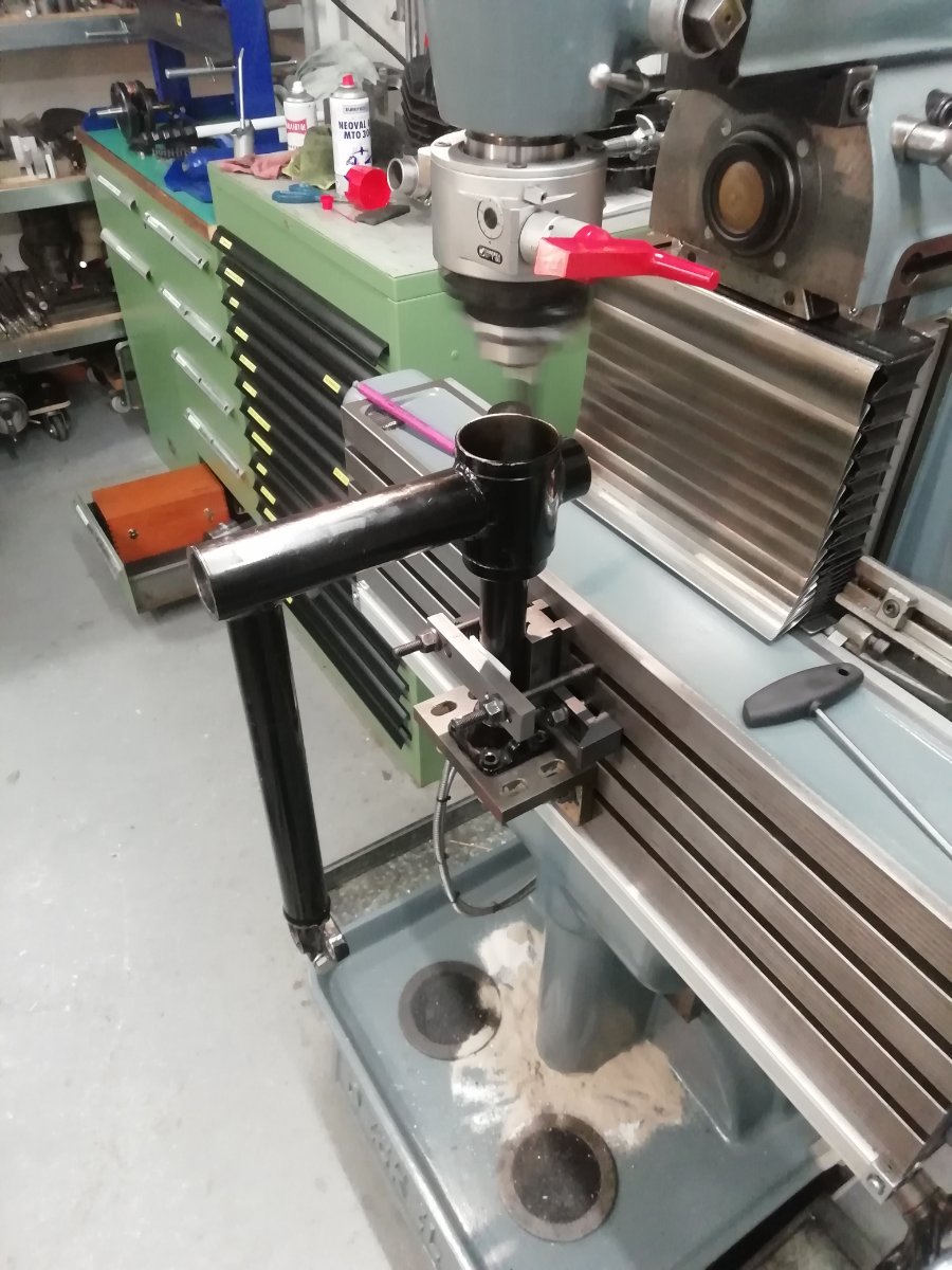 Da Vatis Special zerlegt ist prüfen wir natürlich jegliches Lages bzw. werden normale Wälzlager pauschal erneuert. Bei meiner wie auch seiner war seltsamerweise das Stützlager vom Kreuzgelenk in der Schwinge "knartschig". Seltsam für ein Lager welches kaum Last bekommt. Also mal Lagersitz vermessen und zack, über nen 10tel Untermaß. Der übliche Grosserienpfusch, hier wurde definitiv nach dem Schweißen aus Kostengründen nicht nachgearbeitet. Also habe ich den Lagersitz nachgearbeitet. Allerdings würde ich in Zukunft das Lager nen Zehntel abdrehen da wegen der Ausspannlänge des Werkzeugs Schwingungen ein Thema waren und der Sitz war zum Glück symmetrisch zu eng und nicht unrund.