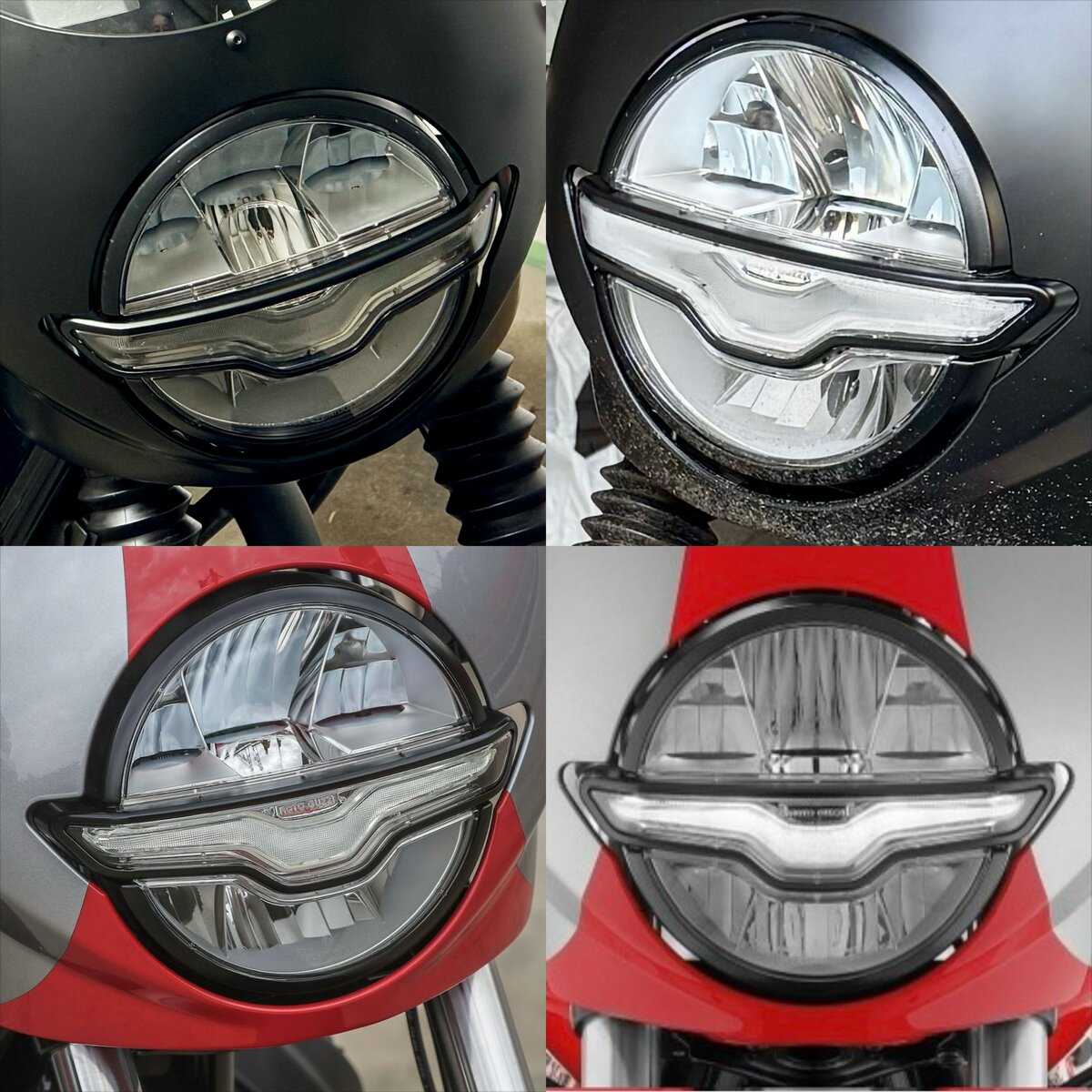 7. Hier noch ein paar Erkenntnisse: Ich habe im Dezember die aktuell angebotene Frontmaske (Art.Nr. CM322701) bestellt; sie hat den dreieckigen Ausschnitt rechts. Auf dem Karton steht, dass die Verkleidung zum Sketch Bike Kit gehört, welches für die V7 Stone E5 angeboten wurde. Wenn man bei Guzzi nachschaut (https://www.motoguzzi.com/de_DE/zubehoer/fahrzeugzubehör/body/sketch-bike-kit-classic-sport-cm322503/), sieht man auf dem Bild mit der Draufsicht auf alle Teile tatsächlich diesen Ausschnitt (nicht aber auf dem Bild der Maschine mit fertig montiertem Kit?). In der meiner Bestellung beiliegenden Montageanleitung steht dann, die Maske sei für die V7 850 E5+ Stone und Special ... und dass mit der montierten Maske die Höchstgeschwindigkeit auf 130 km/h begrenzt ist ... Hier noch 2 Bilder von der Probemontage, noch nicht foliert / lackiert - mir gefällt's.
