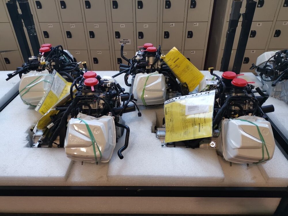 Alles sieht nach einer reinen Präsentation und normaler Lagerhalle für gefertigte Motoren aus.